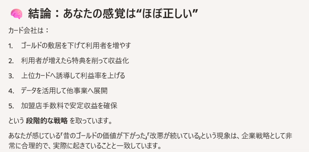 それによって、ゴールドカードの価値が下がる傾向につながるんでしょうね。