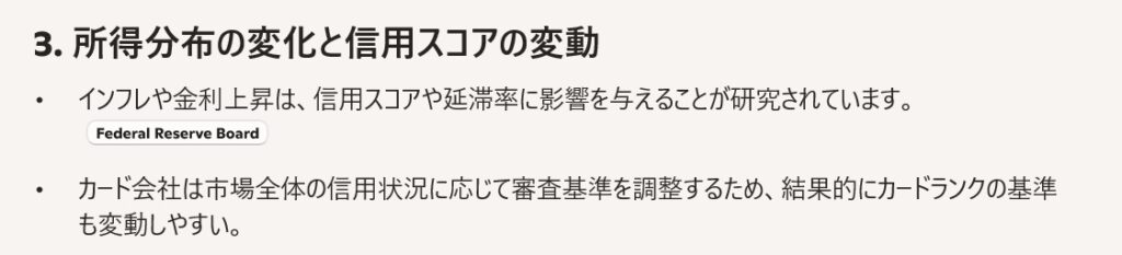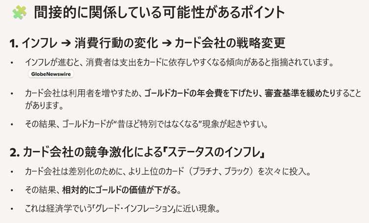 この中で、一番腹落ちしたのは、1のインフレ → 消費行動の変化 → カード会社の戦略変更の流れの部分です。